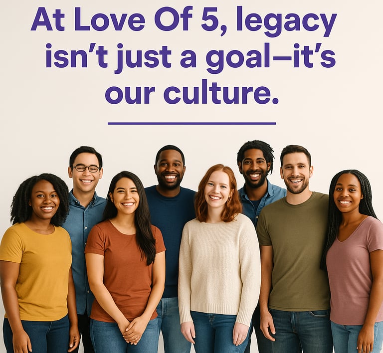 At Love Of 5, legacy isn't just a goal, it’s our culture. We don’t just invest, we build together. Generations of families unite here, bringing their unique stories, perspectives, and values to the table. Whether you’re just getting started or already seasoned, you belong.